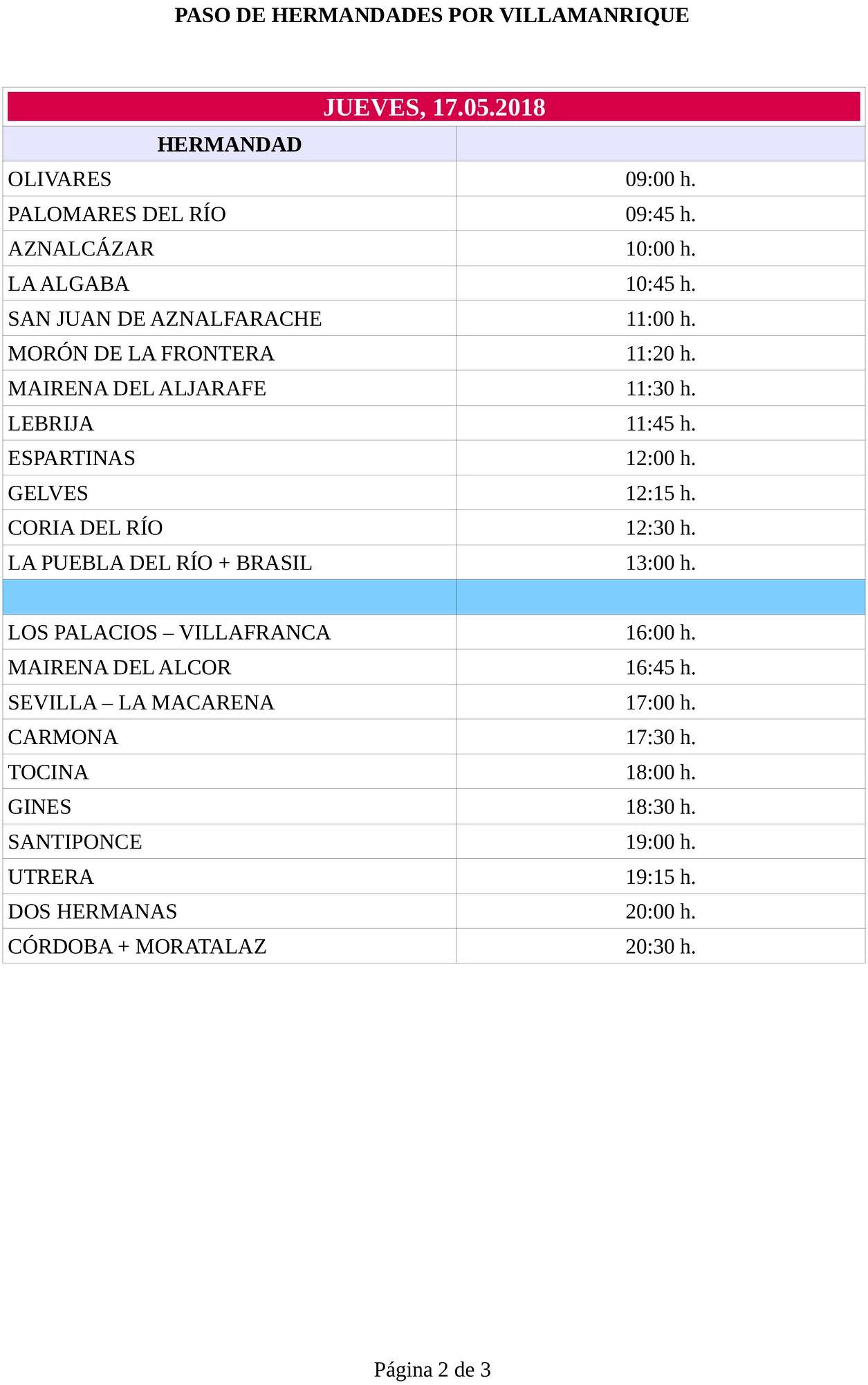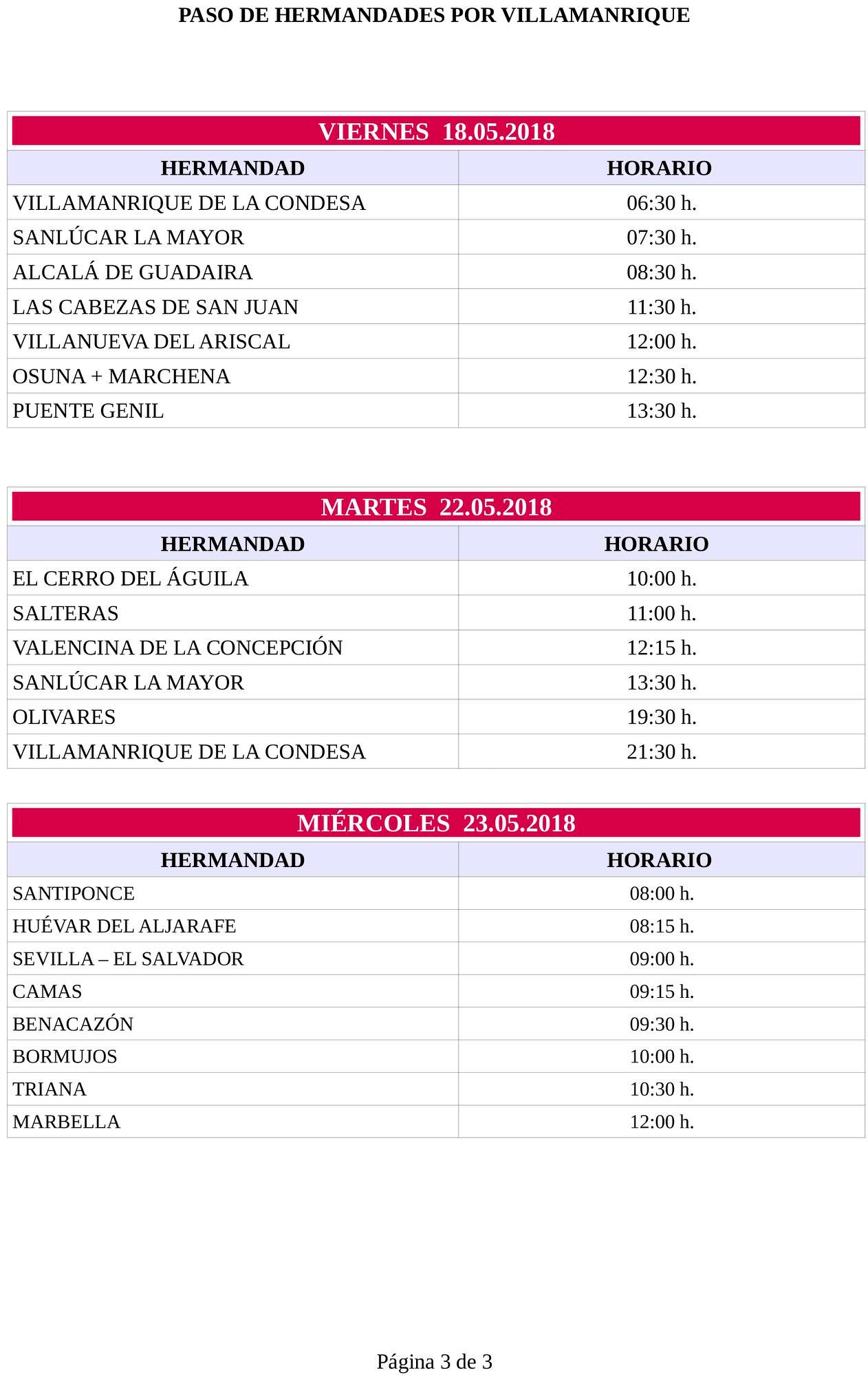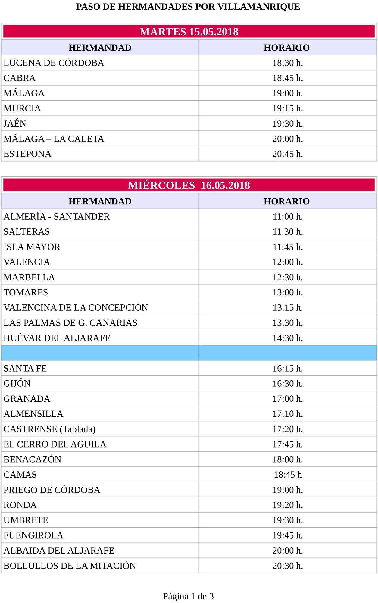 3 de Mayo de 2018 HORARIO DE PASO