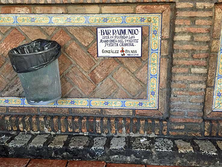 11 de Julio de 2018 En su día publique este articulo, San Benito en el puente , que lo finalizaba diciendo : "Hoy de ese puente y del recuerdo de como la cruzaba la Hermandad solo queda el llamador en el paso ...." .- Pues como "Sevilla es como Paris, que nunca se acaba de ver " ( Iwasaki ) , ayer desayunando me encuentro con la existencia de unos buenos trozos del finado puente de la calle Oriente o Luis Montoto, para ser mas exacto unos adoquínes del mismo, en un bar del sevillano barrio de Nervión, que aqui ven inmortalizados con azulejo y todo .- Estos adoquínes