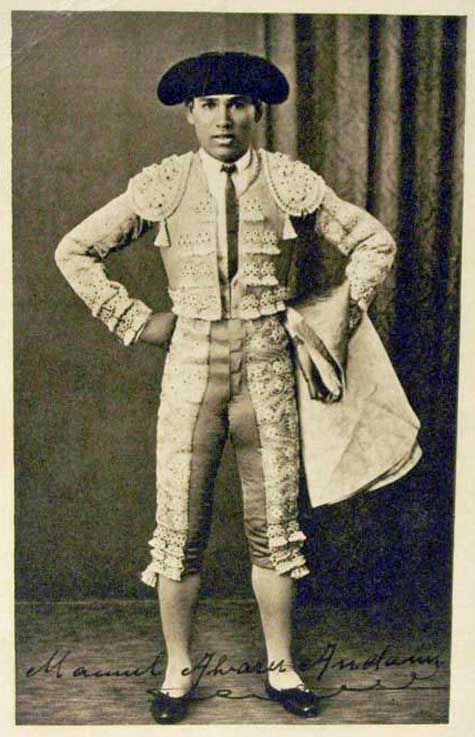 19 de Noviembre de 2018 El torero Manuel Álvarez Pruaño ‘El Andaluz’ nació en Sevilla tal dia como hoy en el barrio de Triana un el 19 de noviembre de 1919. Se presentó en la Real Maestranza de Sevilla el 5 de mayo de 1940, junto a Gallito y Antonio Bienvenida con ganado de Curro Chica. Tomó la alternativa: Valencia, el 15 de marzo de 1942, siendo su padrino: Vicente Barrera y testigo Juanito Belmonte Campoy. La confirmación de la alternativo fue en Madrid: el 6 de mayo de 1943 teniendo como padrinoa Pepe Luis Vázquez y testigo a Gallito.- Alternó triunfos, con graves cornadas en la segunda mitad del los años 40 del pasado siglo XX , hasta que en 1948, en Madrid, recibido un golpe de un toro que le ocasionó una lesión crónica en una pierna cuyo percance le hizo decaer; retirándose de los toros en 1952 .- En la temporada 1969: reaparece de manera efímera en dos corridas en Palma de Mallorca.- Falleció el 18 de febrero del 2000 en Sevilla. Era sobrino de otro torero sevillano, Manuel Álvarez Andaluz, cuyo segundo apellido adoptó él como nombre artístico, siendo éste a su vez sobrino-nieto del legendario Manuel Domínguez, Derperdicios . - |
