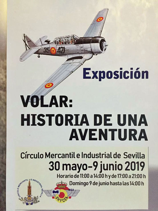 30 de Mayo de 2019 “Volar, historia de una aventura” , es una exposición en el Círculo Mercantil e Industrial de Sevilla, para recorrer las vicisitudes más importantes de la historia de la Aviación militar española acaecidas durante sus más de 100 años de existencia, desde finales del siglo XIX, con la creación del Servicio de Aerostación Militar en 1884, hasta nuestros días.-
