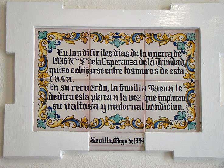 Azulejo recordatorio,que está también en esta casa, y de como estuvo allí la Esperanza Trinitaria