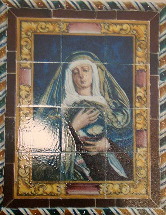 En un zaguán de la calle San Vicente se encuentra este azulejo, que nos recuerda la otra memoria histórica, esa que no se quiere recordar que durante la breve II República y la Guerra Civil en España hubo una persecución religiosa católica en toda regla . En el azulejo podemos leer :