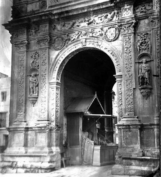 de agua dentro del arquillo del Ayuntamiento de Sevilla . Lo mismo que el