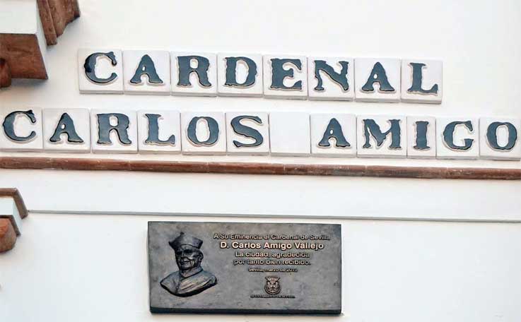 28 de Enero de 2019 Carlos Amigo Vallejo , nació en Medina de Rioseco, Valladolid, tal dia como hoy un el 23 de agosto de 1934, Tras ingresar en la Universidad de Valladolid para estudiar Medicina, decide abandonar dichos estudios e ingresar en el noviciado de la Orden de Hermanos Menores, el 16 de octubre de 1954. Nombrado noviciado, nueve meses después, es ordenado sacerdote el 17 de julio de 1960. Subsecuentemente cursa estudios de Filosofía en Roma en el Pontificio Ateneo Antoniano, donde recibe la licenciatura.- Estando destinado en Madrid, estudia y se licencia en Psicología en la Universidad Central al tiempo que ejerce de profesor en centros de educación especial. También obtiene la licenciatura de Teología por el Seminario Franciscano de Santiago de Compostela. Imparte clases de Filosofía de la Ciencia y de Antropología. En 1970 es nombrado provincial de la provincia franciscana de Santiago.- El 17 de diciembre de 1973 es nombrado arzobispo de Tánger por el papa Pablo VI . Juan Pablo II firma el 22 de mayo de 1982 la bula por la cual le nombra arzobispo metropolitano de Sevilla, sustituyendo en dicha sede al cardenal José María Bueno Monreal. Un mes más tarde, el arzobispo tomó posesión de su cargo.- En dos ocasiones (años 1982 y 1993) recibió y tuvo como huésped en su palacio arzobispal a Juan Pablo II. El 18 de marzo de 1995 ofició el matrimonio de la infanta Elena y Jaime de Marichalar, en la Catedral de Sevilla.-
