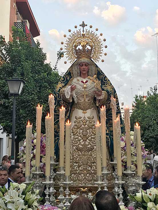 También ha restaurado la Virgen de los Ángeles de los Negritos o la Virgen de la Candelaria. Así, como, es autor de la mayoría de las imágenes que componen el paso de Misterio del Sagrado Decreto de la Trinidad. Dubé de Luque como proyectista. De sus manos salió prácticamente toda la cofradía de los Servitas, a la que que le imprimió un sello de una gran personalidad con sus dos pasos . También el paso de misterio de la Redención, el Decreto de la Trinidad, el del Cristo de la Sed, el palio de la Virgen del Rocio, o el antiguo palio de la Virgen de Consolación de Nervión .- El Consejo de HH y CC de Sevilla le otorgo el Nazareno de Plata de 1988.- |