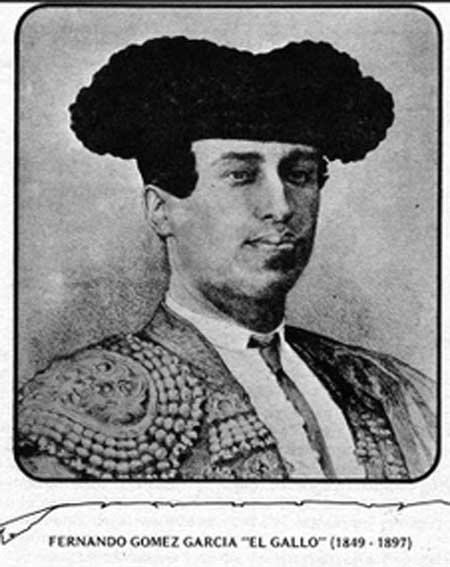 18 de Agosto de 2019 Fernando Gómez García, llamado El Gallo nació en (Gelves) , Sevilla, tal dia como hoy un 18 de agosto de 1849.- Se casó con la bailaora Gabriela Ortega . Considerado como el patriarca de la mítica dinastía de los Gallo a la que pertenecerían sus hijos toreros Rafael "El Gallo" ( El Divino Calvo ) , Fernando "Gallito chico" , y José ( Joselitro el Gallo o Gallito ). Hijas Gabriela y Dolores que se casó con Ignacio Sanchez Mejía .- Curiosamente tomó la alternativa dos veces la primera , el 16 de abril de 1876 de manos de Bocanegra y Chicorro, pero como volvió a torear novillos la tomó otra vez también en Sevilla el 7 de octubre de 1877, apadrinándolo José Giráldez "Jaqueta".- La confirmó en Madrid el 4 de abril de 1880 de manos de Currito, con toros de Vicente Martínez.- Fue un torero con una gran personalidad que marcó con su propio sello artístico, se le atribuye el invento del quiebro de rodillas dado a toro . El célebre torero Rafael Guerra "Guerrita" estuvo en su cuadrilla. Murió en Gelves el 2 de agosto de 1897.- |