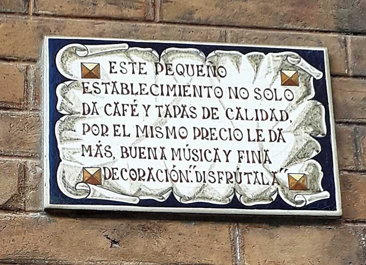 Nuestro impenitente paseante por Sevilla, D. Antonio Jimena, nos hace llegar este simpático azulejo de reclamo publicitario de un bar de nuestro casco histórico