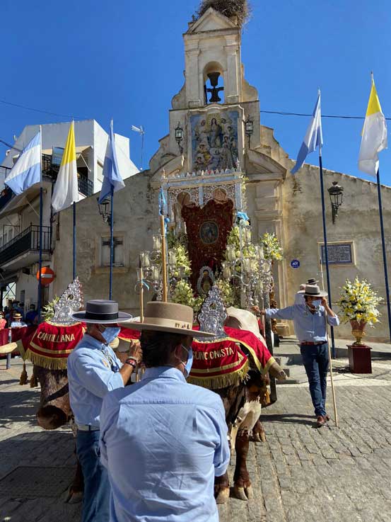 6 de Octubre de 2021 Don Antonio Naranjo de Brito , ha tenido la gentileza de enviarme este texto adjunto y las fotografias que lo ilustran : El fin de semana del 18 y 19 de septiembre, en el transcurso de las Fiestas de la Subida, la Hermandad de la Asunción de Cantillana estrenó la restauración de la conocida carreta del Quintillo, nombre que recibe por haber pertenecido a la Hermandad de la Virgen de los Reyes que peregrinaba a la finca de Fuente Quintillo en la década de los veinte y los treinta del siglo pasado. El sábado 18 salió portando el Simpecado Fundacional de la Hermandad, tal y como sucediera el año que se estrenó en Cantillana, en el rosario que se celebra la víspera de la Subida, y el domingo llevó el Glorioso Simpecado de la Subida durante el recorrido que realizó por el pueblo visitando todas las iglesias del municipio.-