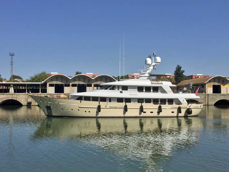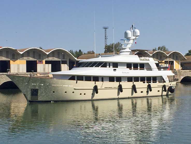 6 de Septiembre de 2021 Ayer llegó a Sevilla, el yate a motor SOPRANO fue construido por Hakvoort en el año 2017. SOPRANO es una elegante embarcación de lujo de 38,25 metros de eslora El alojamiento a bordo del yate de lujo tiene capacidad para alojar a un máximo de nueve invitados distribuidos en cuatro elegantes camarotes dobles. Tiene una tripulación formada por siete tripulantes .- En la cubierta del puente de popa está situada la embarcación auxiliar, mientras que un velero láser y la embarcación auxiliar MOS se guardan a proa en la cubierta principal.- Especificaciones del yate SOPRANO : Tipo/Año: Hakvoort/2017 Manga: 8,00 metros Eslora: 38,35 metros Tripulación: 7 Invitados: 9 Velocidad máxima: 13 nudos Camarotes: 4 Motores: 2 x Caterpillar C18 DITA Velocidad de crucero: 11 nudos |