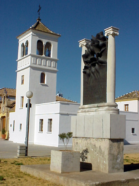 Monumento a Blas Infante al fondo el Cortijo de la Gota de Leche |