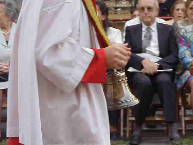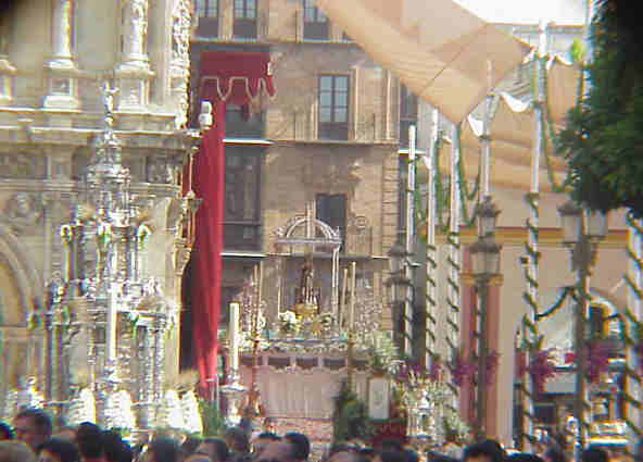 LA CUSTODIA LLEGA A LA PLAZA SAN FRANCISCO AL FONDO EL PASO DE LA HINIESTA CORONADA |