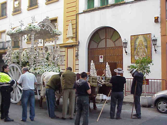 PREPARANDO LA CARRETA EN LA CALLE VIRGEN DE