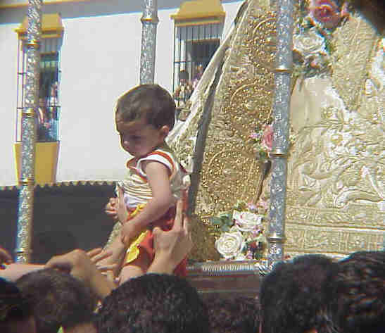 AGARRADO A TUS VARALES ROCIO YO VOY REZANDO |