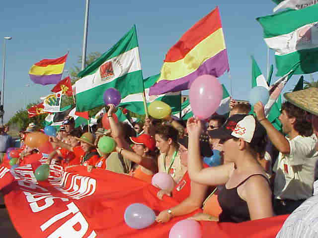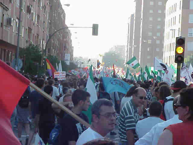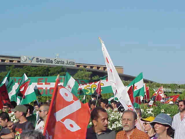"Salida procesional" de la Antiglobalización Nuestra Alcalde justificaba las molestias que los sevillanos hemos padecido estos dias ,lo mismo que en Semana Santa soportamos de buen grado las molestias que ocasionan los cortes de trafico de las procesiones en la calle, siendo manifestaciones devocionales ,pues bien haciendo una regla de tres aqui tenemos la "salida procesional" de la manifestación antiglobalizacion