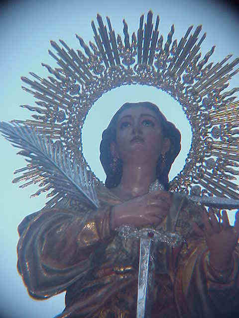 SANTA LUCIA CON SUS EMBLEMAS LA ESPADA Y EL PLATO CON LOS OJOS