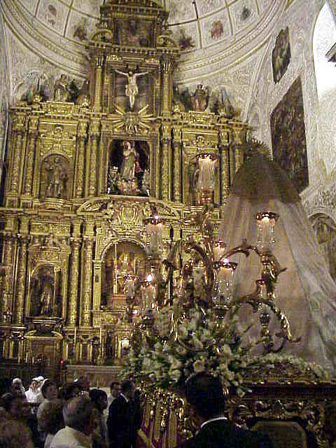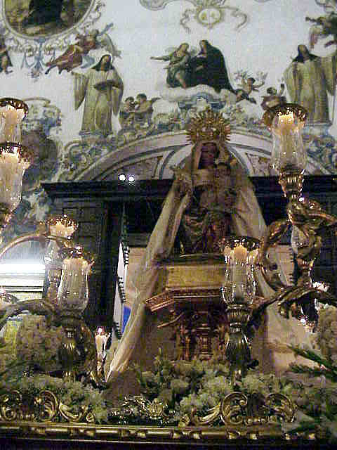LA VIRGEN DE BELEN ANTE EL IMPRESIONANTE RETABLO DEL MONASTERIO DE SAN CLEMENTE |