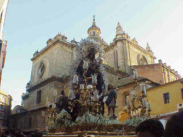 LA VIRGEN DE LA SALUD EN LA PLAZA DEL PAN AL FONDO EL SALVADOR |