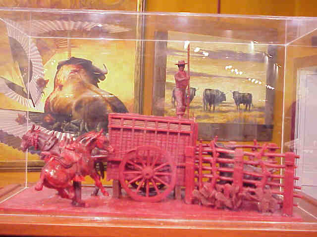 EL ARTE TAMBIEN ESTA PRESNETE EN MUESTRAS PICTORICAS O MARAVILLAS ESCULTORICAS COMO LA QUE AQUI VEN TODO SE REPRESENTA HASTA EL ULTIMO DETALLE DE UN ENCIERRO A LA ANTIGUA |
